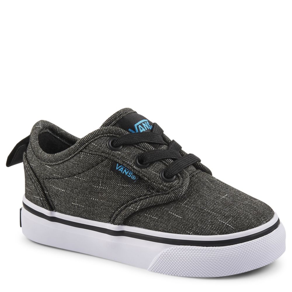 Half pints will look ready to rock the half-pipe in the Atwood infants' shoe by Vans. This low-cut classic is cool and casual; elastic laces makes it easy to slip on and off.- Textile upper