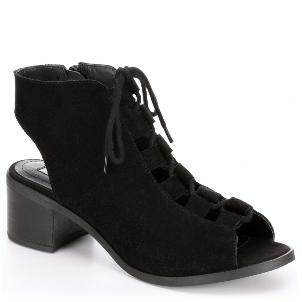 Add instant style with the Aralyn women's sandal from Steve Madden this rich suede covered silhouette features a lace-up construction with modern block heel. An inside zip, peep toe and exposed back complete this trendy look.- Suede upper