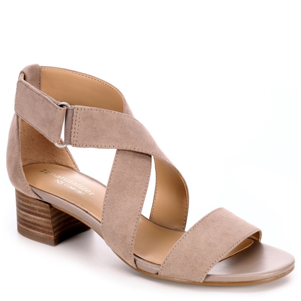 Sleek straps hug the foot for a casual yet dressy look. The Naturalizer Adele women's sandal features a hook and loop strap with block heel and soft, velvety fabric.- Fabric upper