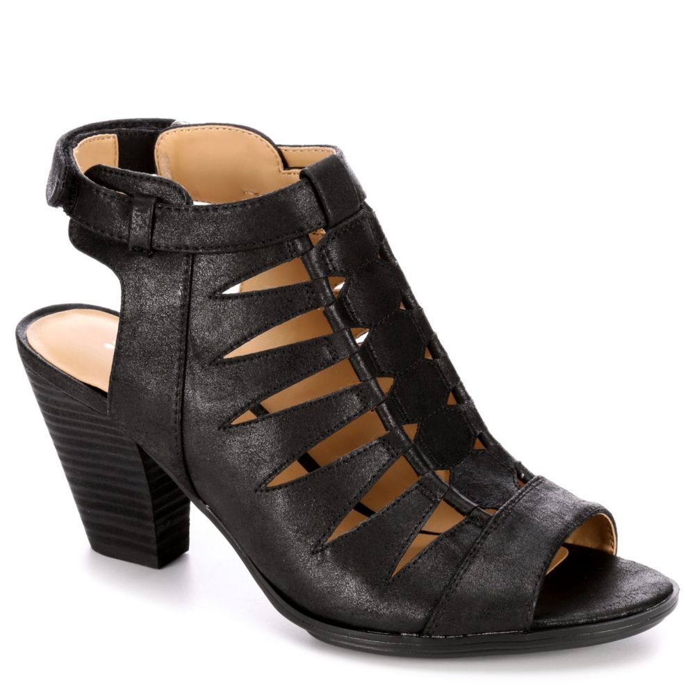 Stand tall in the sleek Naturalizar Talan women's sandal. Unique cut outs lend a cool edge to the synthetic silhouette along with a peep toe and exposed back. Create a boho flair with every step.- Synthetic upper