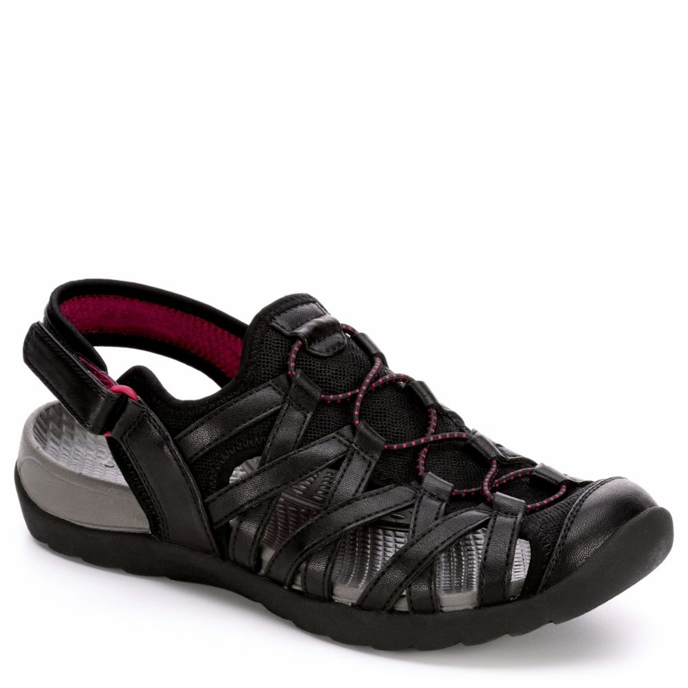 The Bare Traps Frenzie women's sandal brings athletic wear and casual style together in one sturdy silhouette. It features a hook a loop closure along with bungee and interlacing straps for supportive style. Keeping a sturdy step is a vibration absorbing molded outsole to guard against slipping.- Synthetic upper