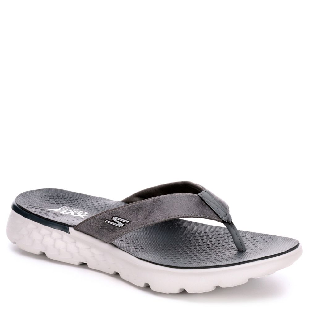 The support and style of the P.G. On-The-Go men's sandal from Skechers is a must have. This lightweight sandal is ultra comfy with it's soft leather upper, Goga Max™ technology, 5GEN™ midsole and 'SQUISH' component for all-day comfort.- Fabric upper