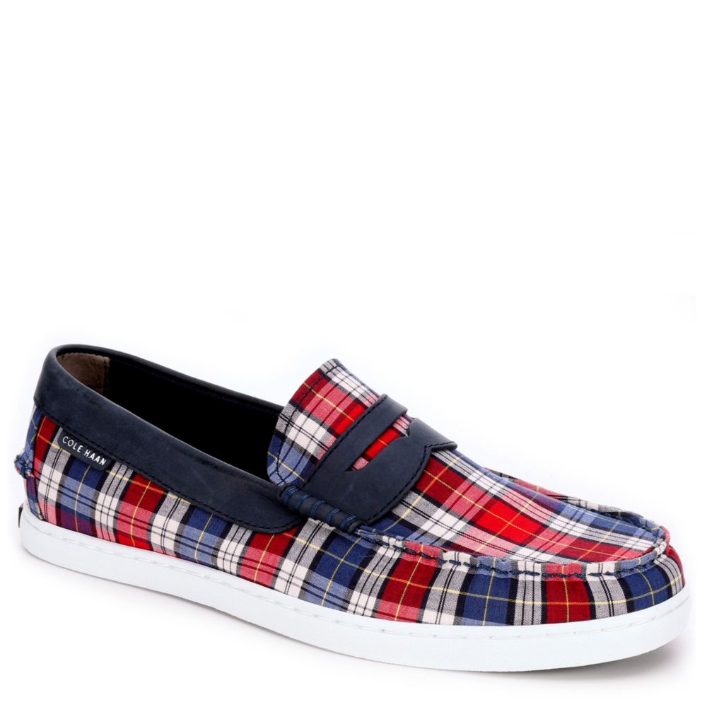 It's not summer until you slip on your men's canvas Nantucket II loafers from Cole Haan. Complete with a penny slot strap, this slip-on sports a round moc toe for a roomy fit and a rubber sole for ultimate style, comfort and stability.- Plaid Canvas upper