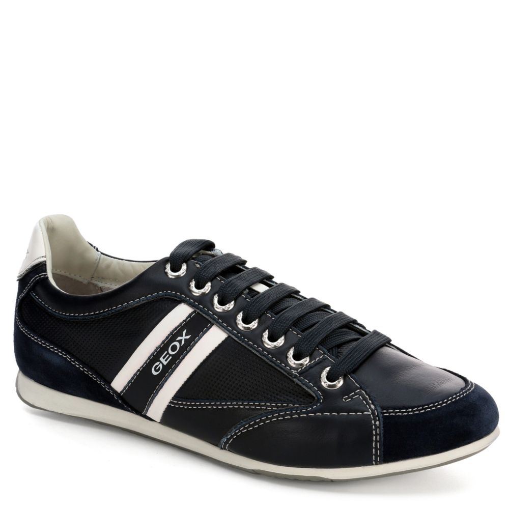 Keep it cool and casual in the Geox Andrea men's sneaker. It has a leather upper with mesh detailing and sporty stripes. A lace-up closure ensures the perfect fit for everyday comfort.- Leather upper