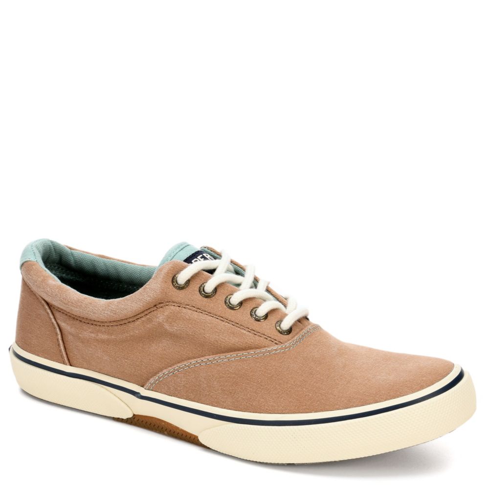Lightly faded canvas gives the Halyard CVO men’s shoe from Sperry a worn-in, sun-drenched look. The hand-sewn moc construction adds authentic nautical style, and a rubber outsole promises dependable traction on the docks.- Canvas upper