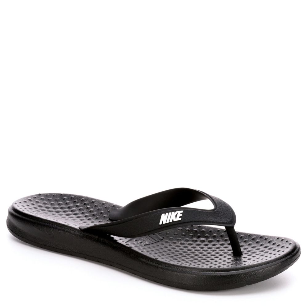 Celebrate the warm weather with a new pair of Nike Solay women's flip flop sandals. The padded textured footbed will cradle your feet while you run errands or head to the beach!- Synthetic upper