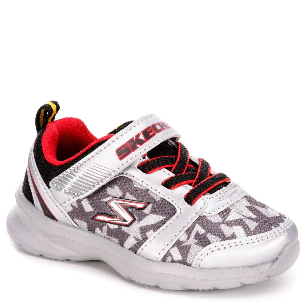 He'll be ready to run all over in the Skechers Skech Step boys' sneaker. This comfortable number features a padded footbed, easy elastic laces and hook and loop closure. A breathable mesh upper and rubber outsole create the perfect everyday shoe.- Mesh upper
