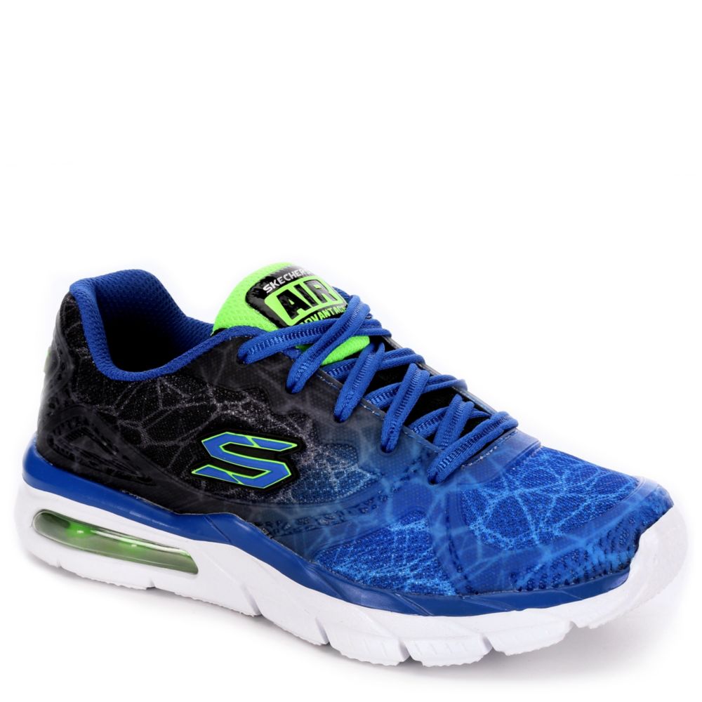 He'll hit the playground in style in the Skechers Air Advantage boys' sneaker. It features a cool geometric print on the nearly one piece mesh upper and synthetic overlays. An Air Cooled Memory Foam cushioned insole will keep him comfortable all day along with a FlexSole shock absorbing midsole.- Mesh upper