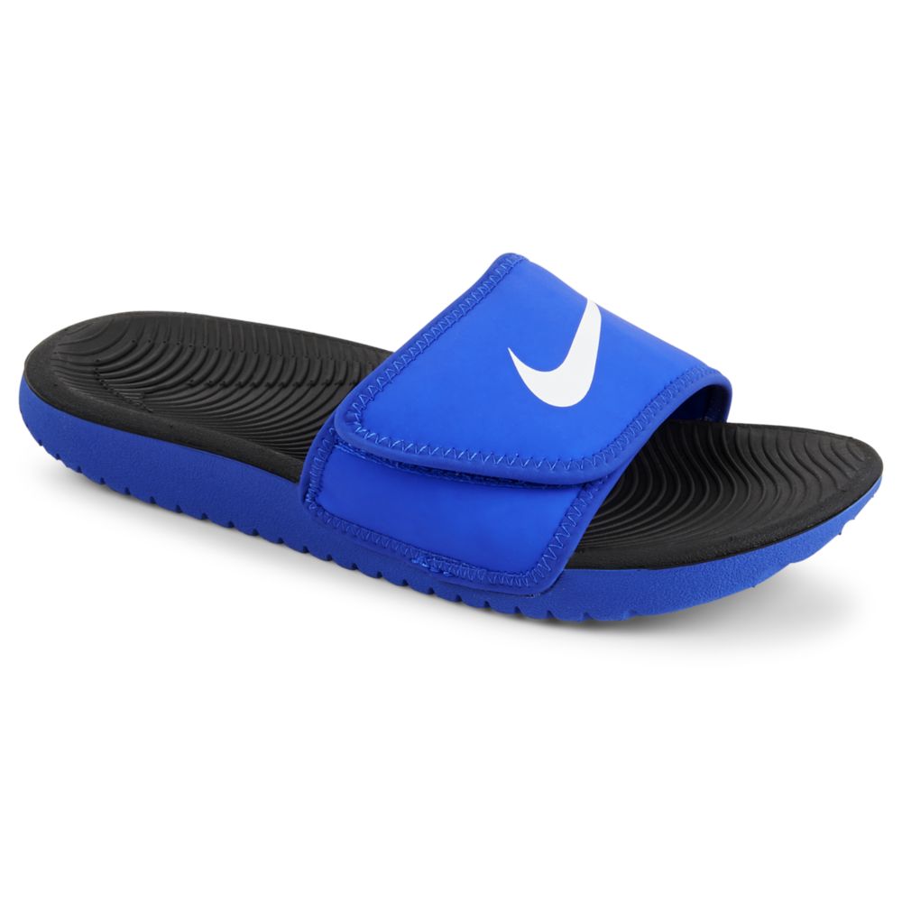 After a tough practice or game, give your feet a break with the cool Kawa Adj boys' slide by Nike. Its soft synthetic strap adjusts to the foot for custom comfort, while a Phylon® midsole provides plush, lightweight cushioning.- Synthetic upper