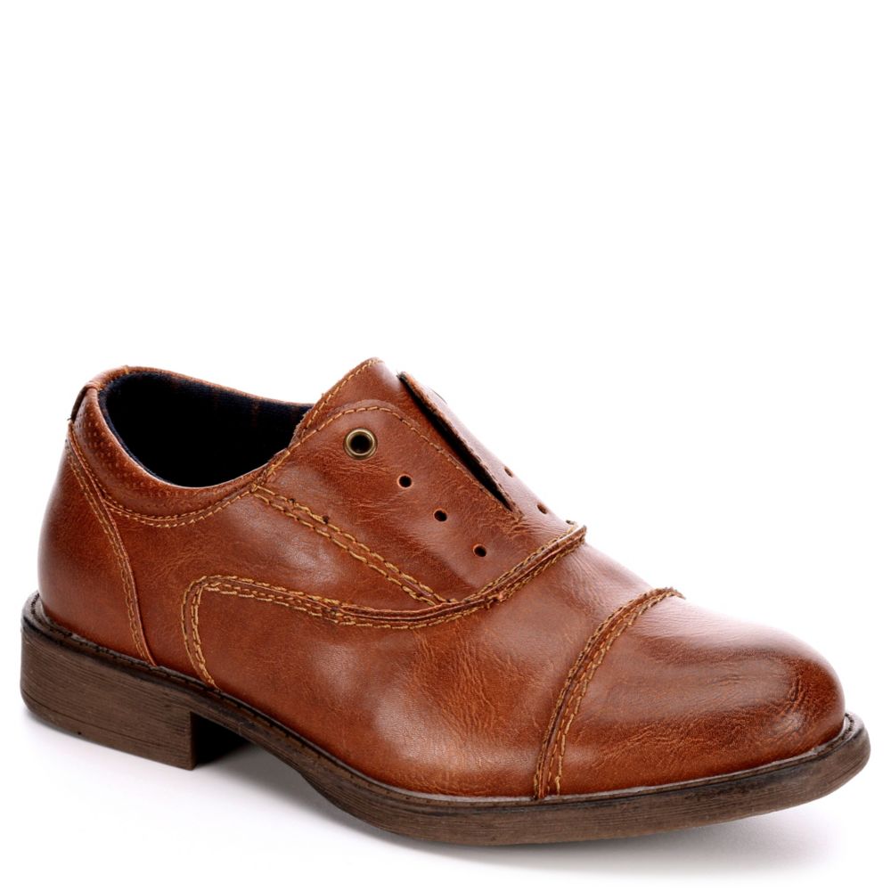 He'll be ready to show off his style in the charming Steve Madden Bscafell boys' dress shoe. On trend with the no-lace construction, this oxford style has stich detail throughout and is easy to slip-into. He'll be ready for any event paired with jeans or dress pants.- Faux leather upper