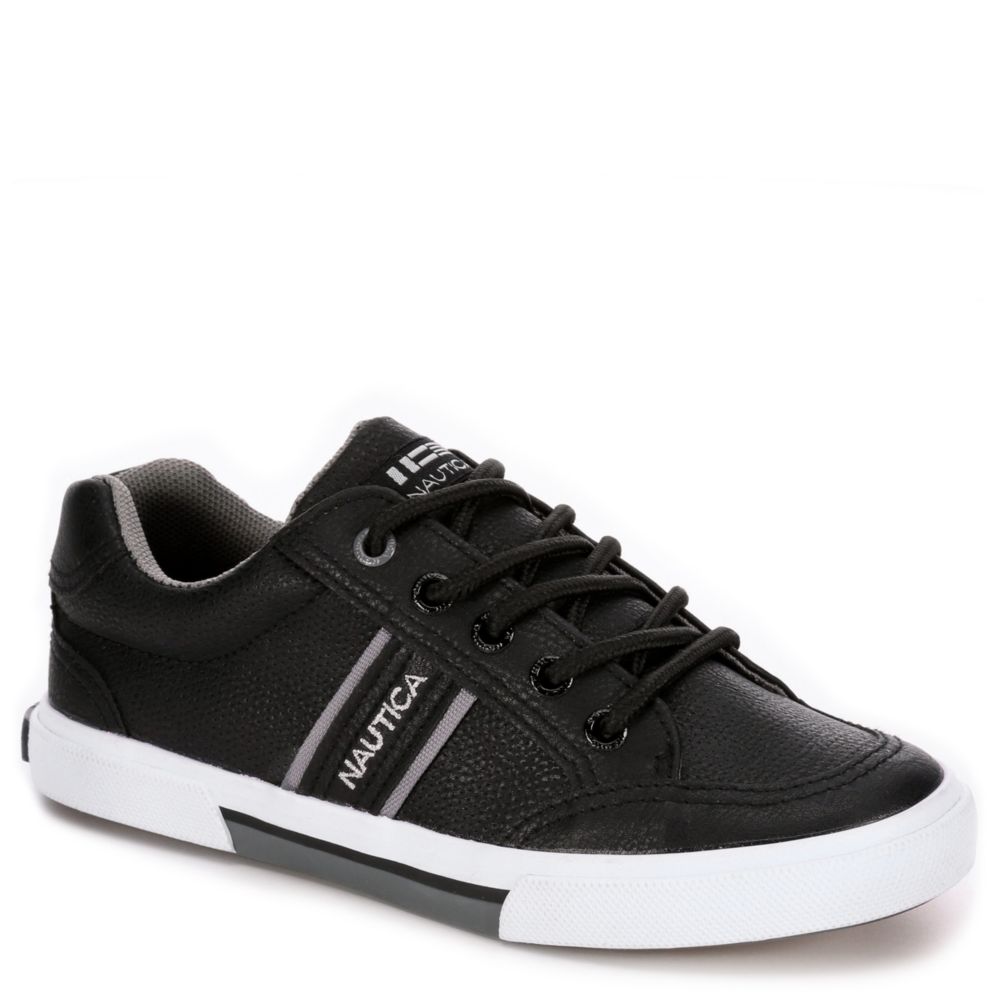 This simple sneaker is ideal for everyday with it's clean lines and sporty construction. The Nautica Outpoint kids' sneaker features a synthetic leather with lace-up closure and Nautica stripe logo. The rubber outsole keeps a sturdy step for a full day on the court or at the park.- Faux leather upper