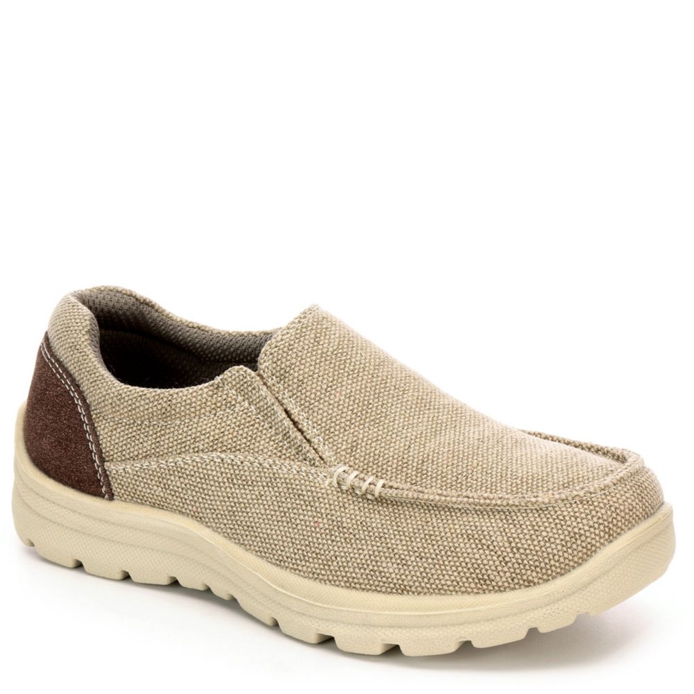 He'll look like such a big boy with these Deer Stags Alvin shoes! Canvas uppers provide a preppy look while a fully cushioned footbed ensures his feet stay comfy all day.- Canvas upper with dual gore elastic for added comfort and ease