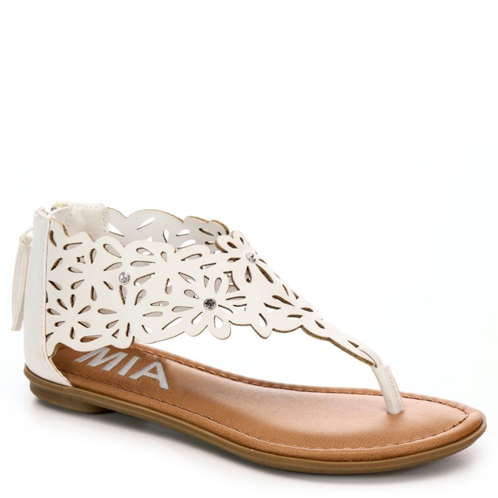 She'll love how this sandal sparkles with rhinestones! The Mia Abilene will look great with any outfit she wears. Laser cutouts create a pretty pattern, and back zipper makes for easy on/easy off.- Synthetic upper