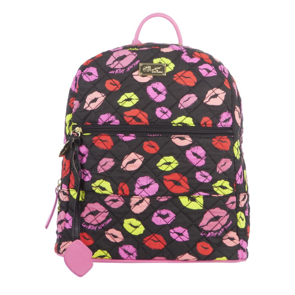 A fun pattern makes this Luv Betsey backpack a hit! The quilted cotton styling features adjustable straps, a carry handle and outside zippered pocket for easy accessibility. The perfect size to fit all of your school necessities!- Cotton/poly blend
