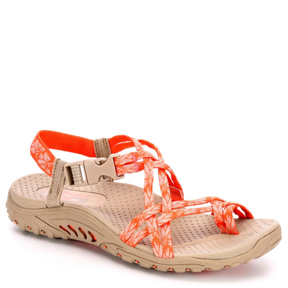 Take on the terrain in a tropical way with the Luau women's sandal from Skechers. Fabric straps combine with a quick clicking buckle for a comfortable, breathable fit. The webbing features a colorful printed design with a contoured footbed for a cushioned step.- Webbing fabric upper